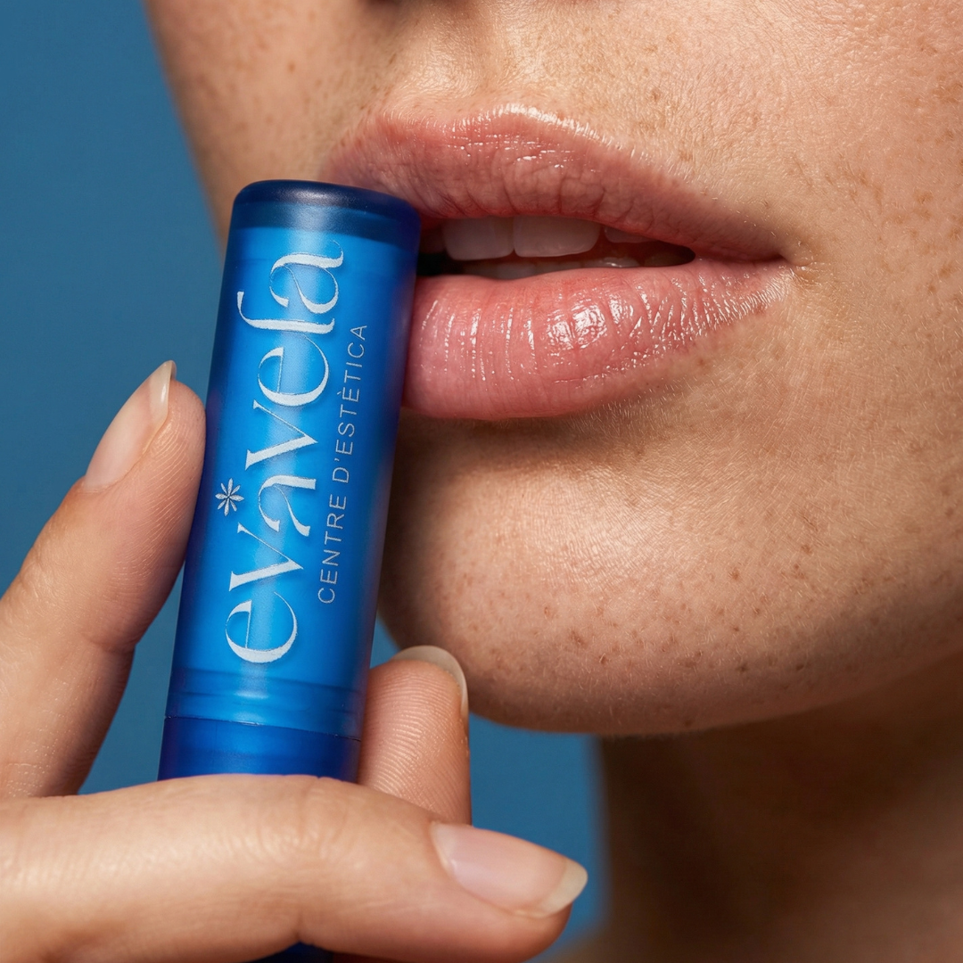 El resultat va ser un pintallavis personalitzat, un producte quotidià que totes portem a la bossa i que encaixava perfectament amb l’univers de bellesa de l’Eva. Després de valorar diferents opcions, vam apostar per un embolcall blau amb el logotip en blanc: net, elegant i coherent amb la seva identitat visual. Un detall petit en format, però gran en record de marca.